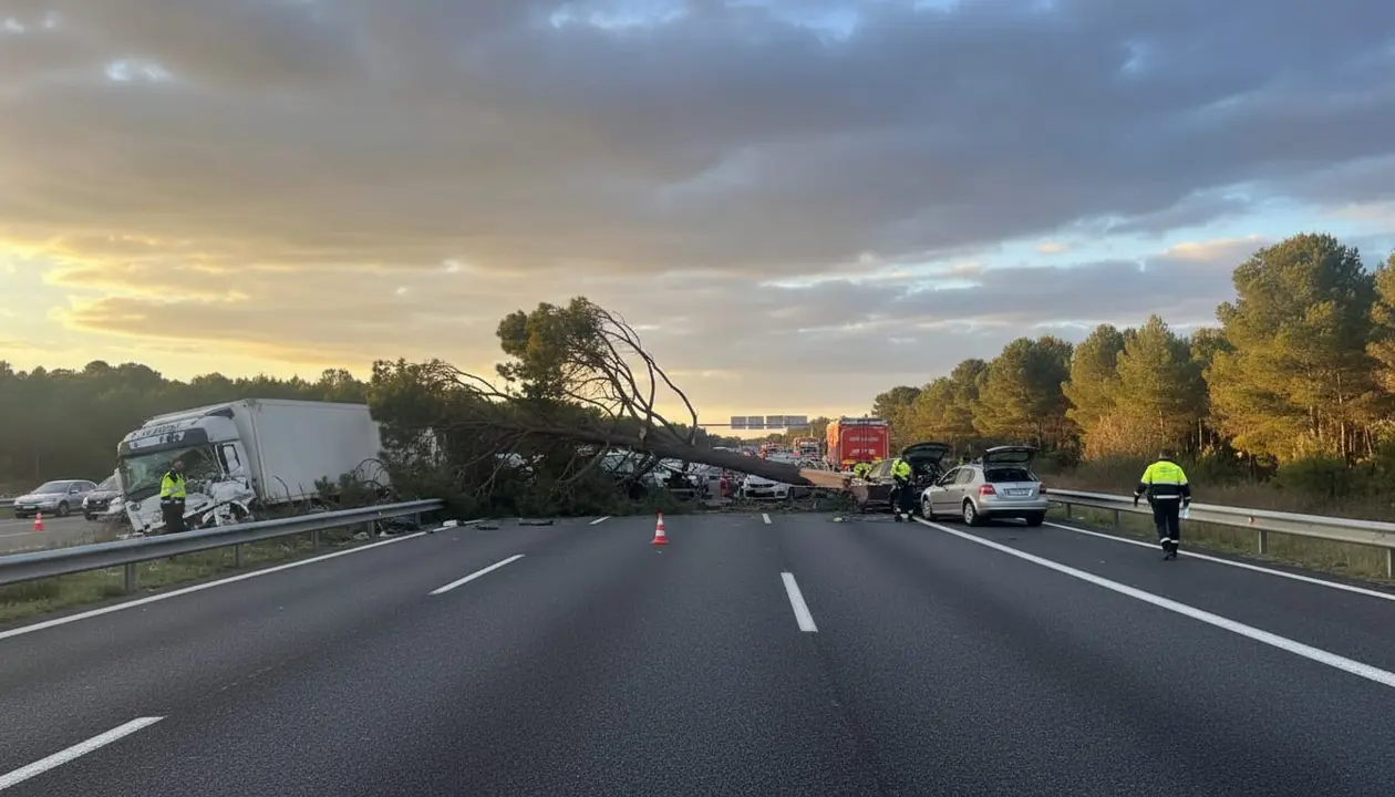 Vandellòs i l'Hospitalet de l'Infant va ser escenari d'una tarda complicada a l'AP-7. Un vent inesperat va fer caure dos pins a la calçada i va desencadenar un incident que ningú esperava.