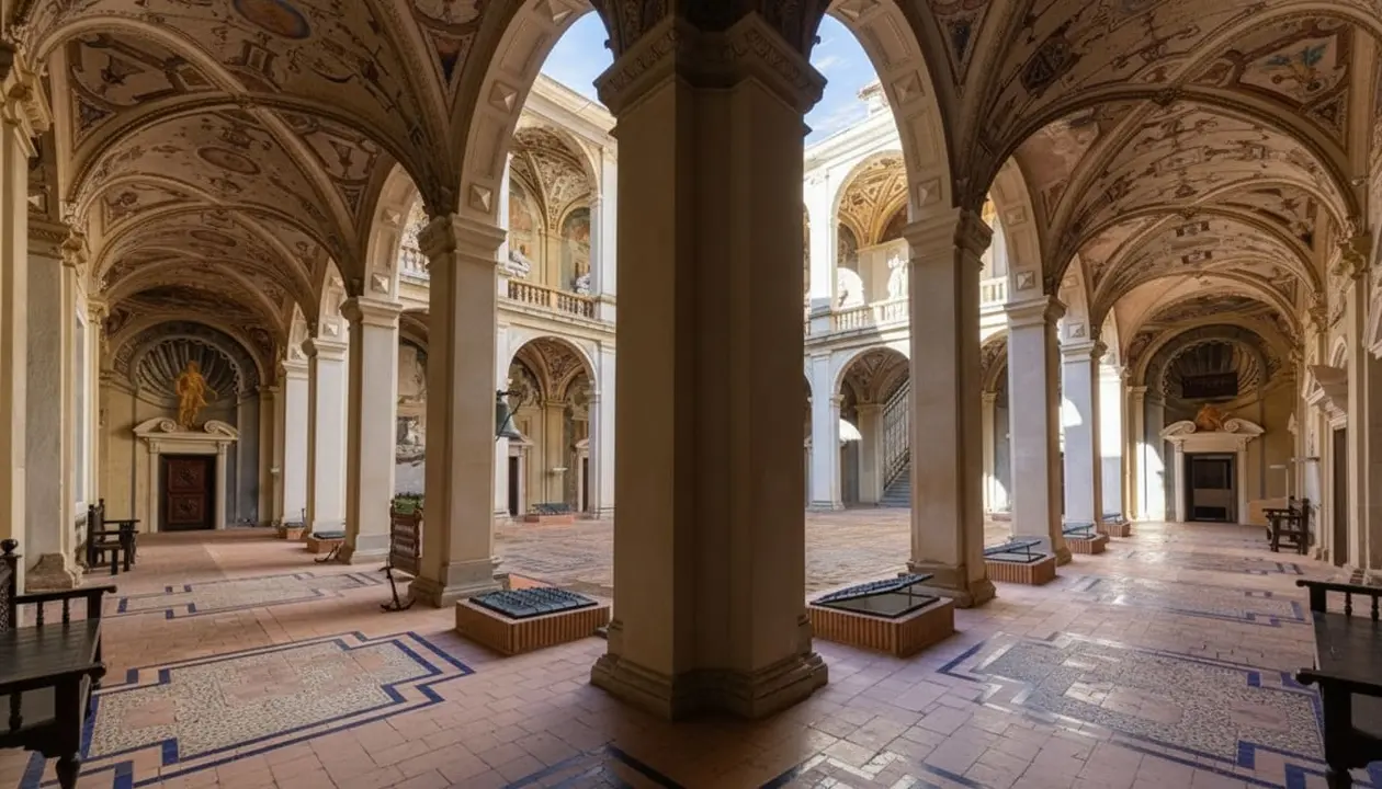 Els frescos manieristes que cobreixen les sales i les escales, obra de pintors italians com Giovanni Battista Peroli, són un viatge visual a la mitologia clàssica i la història romana, combinant trampantojos arquitectònics amb escultures que et deixen sense paraules.