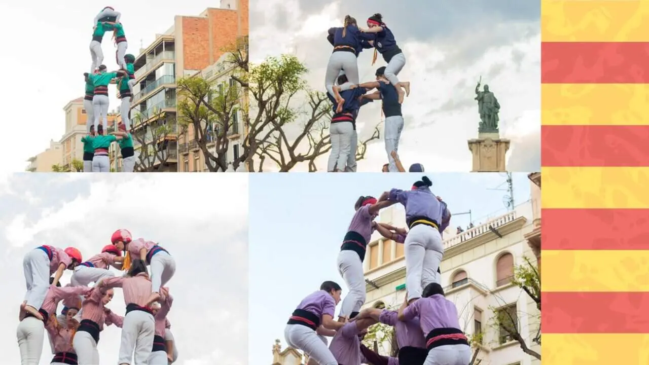 Actuación castellera en la Rambla Nova