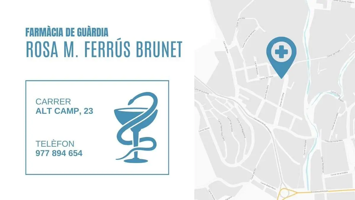 La farmacia Rosa Mª Ferrús Brunet, hoy en la calle Alt Camp, 23, es la clave para quien necesite medicamentos fuera de horario en Valls.