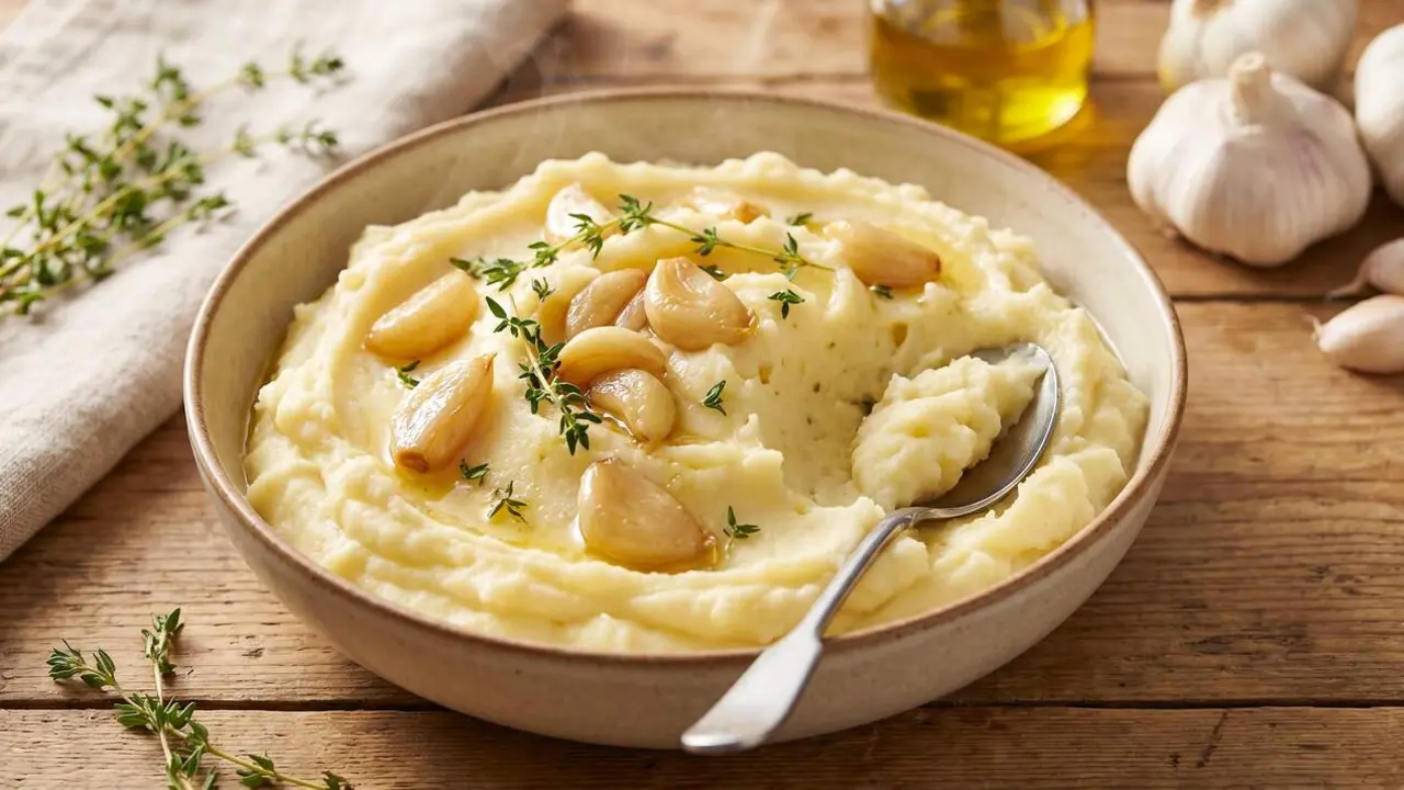 El secreto francés para un puré de patatas más cremoso con ajo confitado