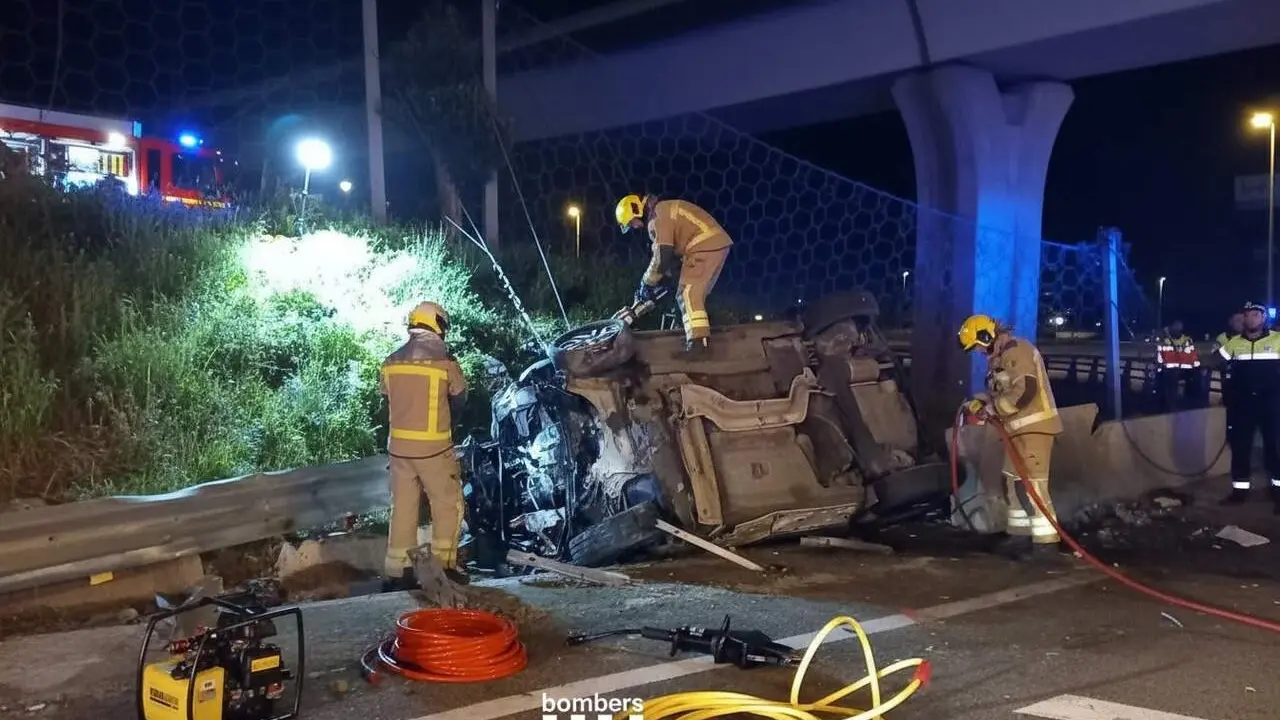 Accident a la T-11 de Tarragona amb vehicle bolcat i persona atrapada