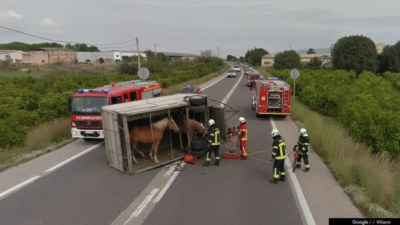 Vuelca un remolc amb dos cavalls a la C-12 a Aldover